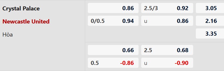 Soi kèo châu Á Crystal Palace vs Newcastle: