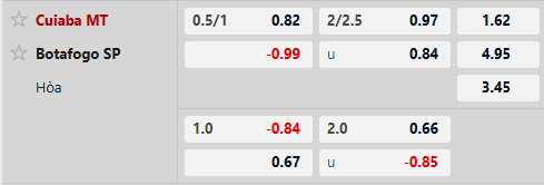 Thông tin tỷ lệ Cuiaba vs Botafogo SP: