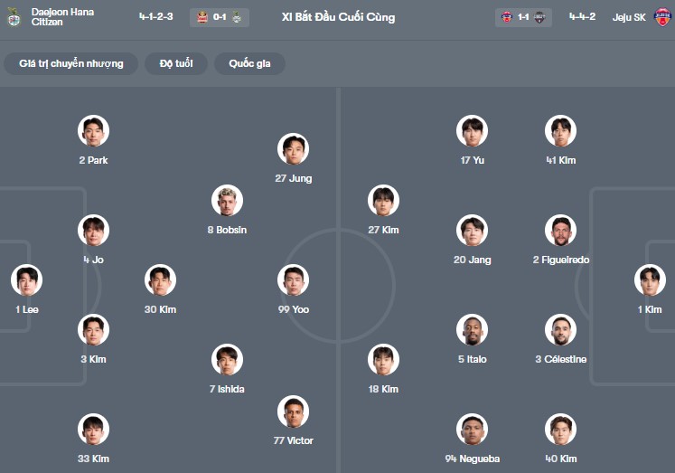 Đội hình dự kiến Daejeon Hana vs Jeju SK: