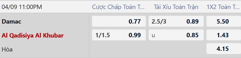 Thông tin tỷ lệ cược Damac vs Al Qadisiya: