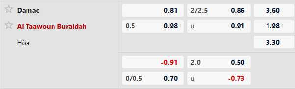 Thông tin tỷ lệ kèo Damac vs Al Taawon: