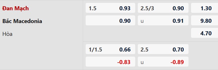 Soi kèo châu Á Đan Mạch vs Bắc Macedonia: