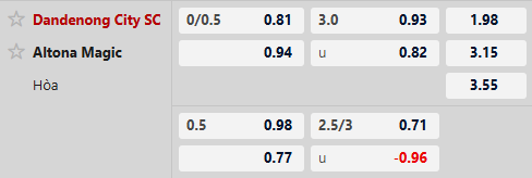 Thông tin tỷ lệ Dandenong City vs Altona Magic:
