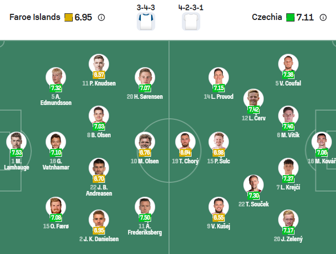 Đội hình dự kiến Đảo Faroe vs Séc: