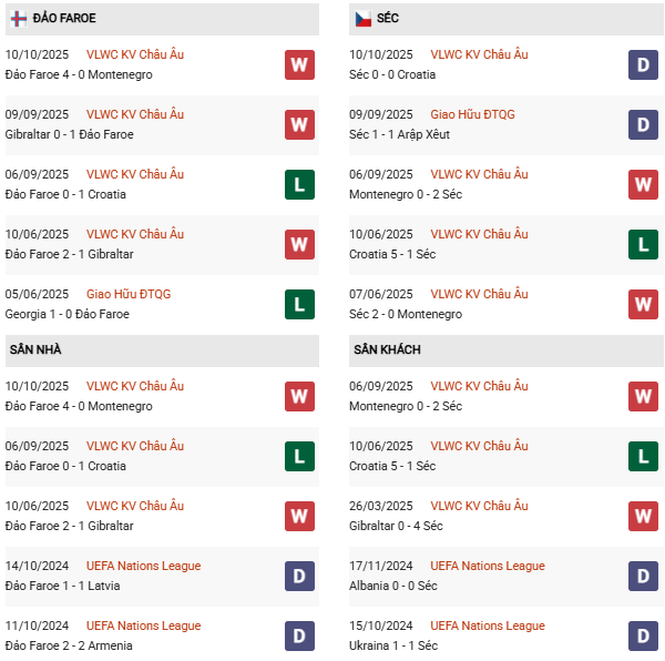 Thống kê phong độ Đảo Faroe vs Séc: