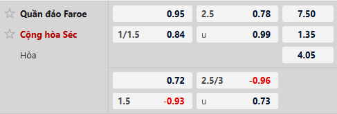 Thông tin tỷ lệ bóng đá Đảo Faroe vs Séc: