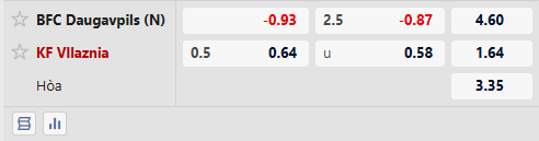 Thông tin tỷ lệ Daugavpils vs Vllaznia: