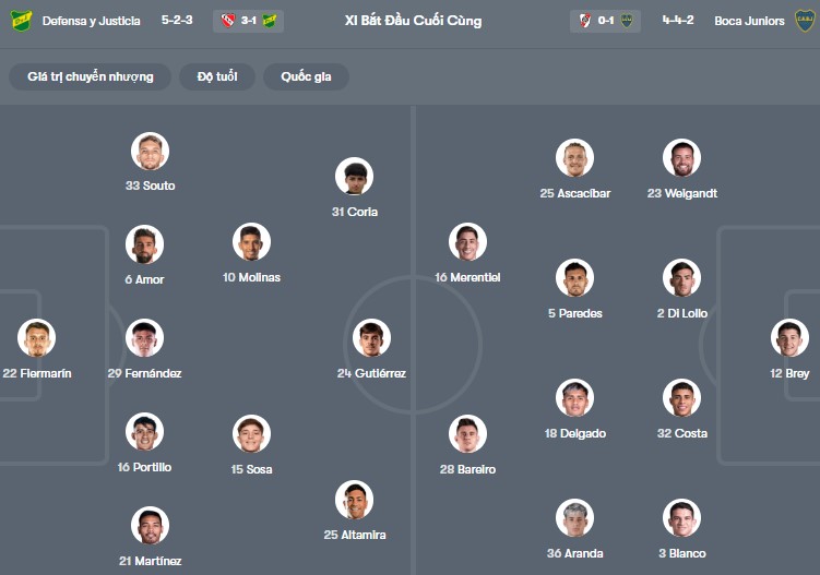 Đội hình dự kiến Defensa vs Boca Juniors: