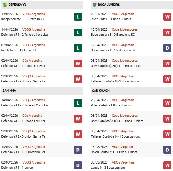 Dự đoán kết quả Defensa vs Boca Juniors: