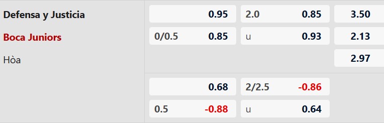 Thông tin tỷ lệ Defensa vs Boca Juniors: