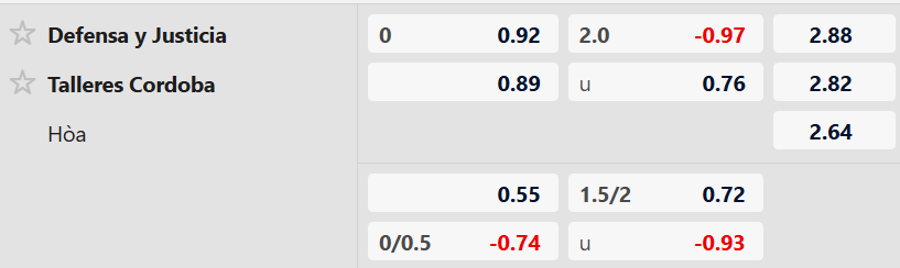 Thông tin tỷ lệ bóng đá Defensa y Justicia vs Talleres Cordoba: