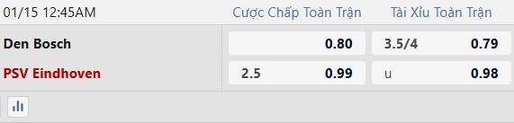 Kèo châu Á được niêm yết ở mức PSV Eindhoven chấp 2 1/2 bàn, phản ánh đúng sự chênh lệch lớn về đẳng cấp giữa hai đội. Den Bosch dù có phong độ sân nhà khá tốt, nhưng chủ yếu đến từ các đối thủ cùng hoặc dưới cơ. Khi đối đầu với một PSV vượt trội về chất lượng đội hình và hiệu suất ghi bàn, khả năng Den Bosch trụ vững trong suốt 90 phút là không cao. Nếu PSV chơi đúng sức, việc họ thắng với cách biệt từ 3 bàn trở lên là kịch bản hoàn toàn khả thi.