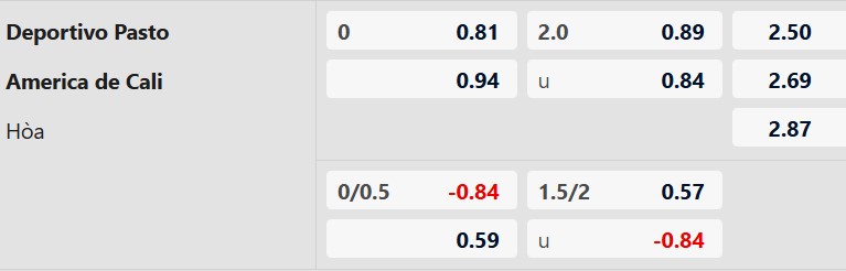 Soi kèo châu Á Dep. Pasto vs America de Cali: