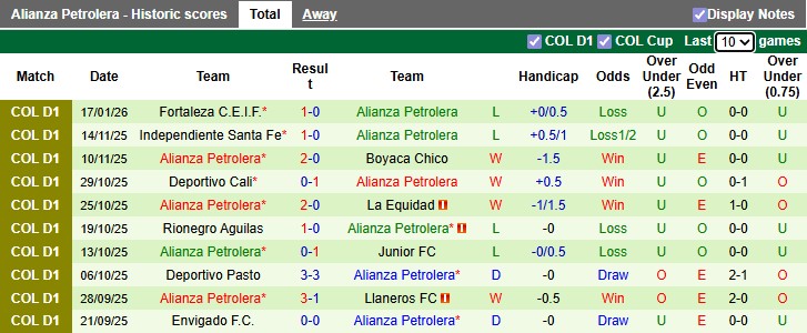Không như Tolima, Alianza đã phải nếm mùi thất bại trong trận mở màn Apertura 2026 vừa rồi và đó còn là lần phơi áo thứ 3 trong phạm vi 4 chuyến làm khách gần đây của Alianza gồm 1 trận có mức +3/4 tương tự. Tính ra, Alianza thua trọn vẹn 6/6 trận xa nhà diễn ra trong vòng một năm qua mà bị xếp dưới mức 3/4 hoặc 1 bàn. Tựu trung lại, chủ nhà Tolima rõ ràng đáng tin hơn.