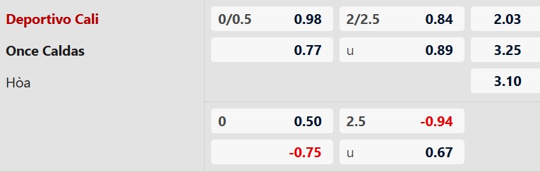 Soi kèo châu Á Deportivo Cali vs Once Caldas: