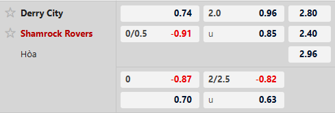Thông tin tỷ lệ Derry City vs Shamrock Rovers: