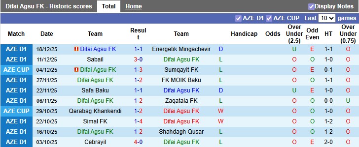 - Difai FK thắng 1, hòa 1, thua 2 trong 4 trận gặp Cebrayil gần đây.