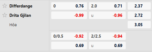 Thông tin tỷ lệ bóng đá Differdange vs Drita Gjilan: