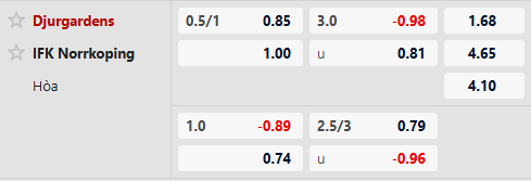 Thông tin tỷ lệ Djurgarden vs IFK Norrkoping: