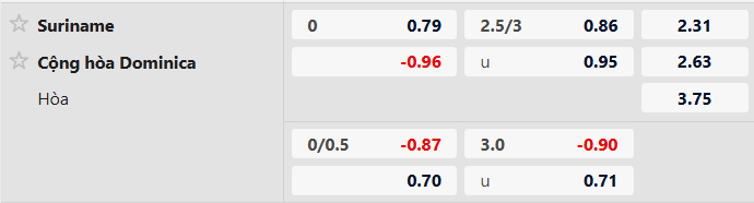 Thông tin tỷ lệ kèo Dominican vs Suriname: