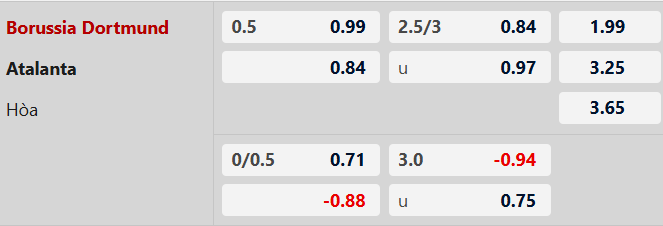 Thông tin tỷ lệ bóng đá Dortmund vs Atalanta:
