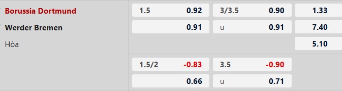 Thông tin tỷ lệ kèo bóng đá Dortmund vs Bremen: