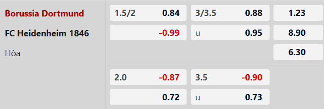 Thông tin kèo bóng đá Dortmund vs Heidenheim: