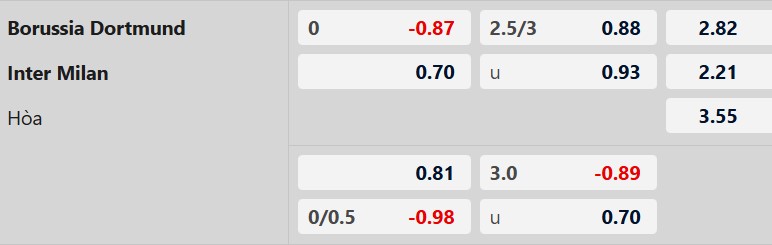 Thông tin tỷ lệ kèo bóng đá Dortmund vs Inter Milan: