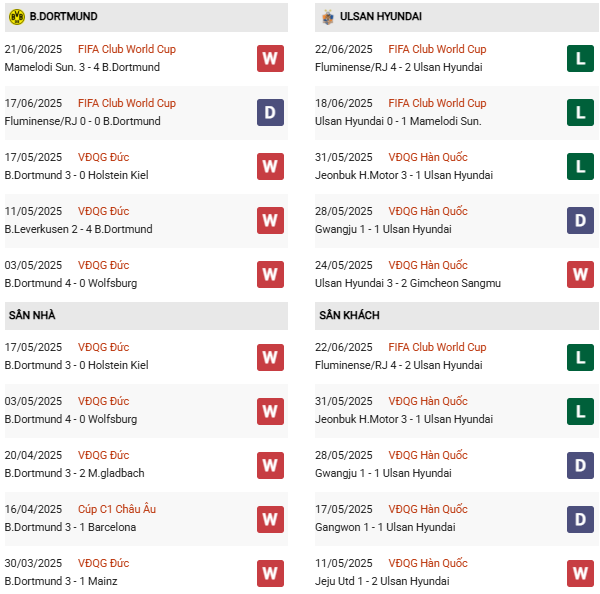 Thống kê phong độ Dortmund vs Ulsan HD: