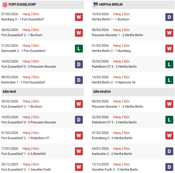 Thống kê phong độ Dusseldorf vs Hertha Berlin: