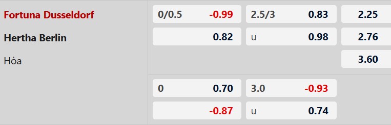 Thông tin tỷ lệ kèo Dusseldorf vs Hertha Berlin:
