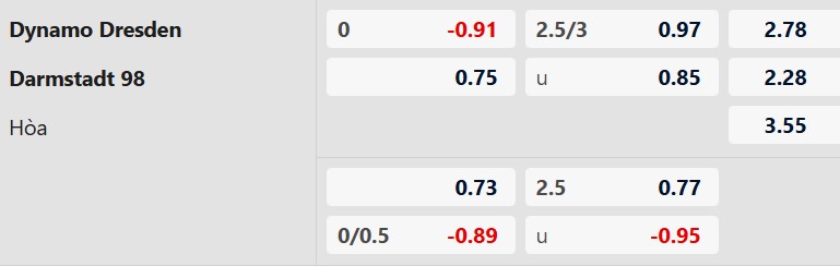 Thông tin tỷ lệ kèo Dynamo Dresden vs Darmstadt: