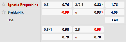 Nhận định Egnatia vs Breidablik, 02h00 ngày 9/7, vòng sơ loại Cúp C1 châu Âu, sân Arena Egnatia. Egnatia khiến các nhà đầu tư ôm hận ở 4/5 trận gần đây trên sân nhà có xuất hiện tỷ lệ trên sàn giao dịch.