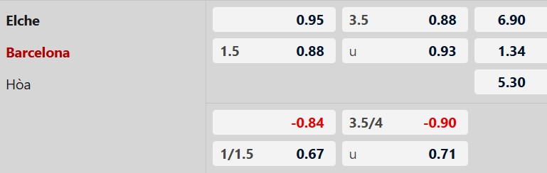 Nhận định kèo châu Á Elche vs Barcelona: