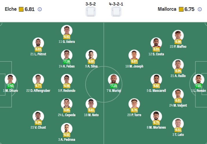 Ở bên kia sân, Mallorca cũng không khá hơn là bao khi đứng thứ 16 với 28 điểm, chỉ hơn chính Elche khoảng cách 2 điểm. Đội khách cũng thể hiện phong độ thất thường với 1 chiến thắng và 3 thất bại trong 5 trận gần nhất. Dù vừa đánh bại Espanyol, nhưng trước đó họ lại thua liên tiếp trước Betis, Celta Vigo và Real Sociedad.