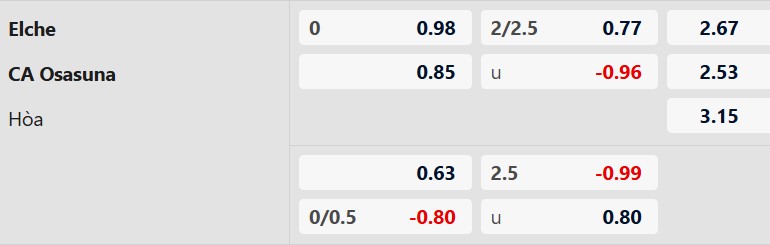 Thông tin tỷ lệ cược Elche vs Osasuna: