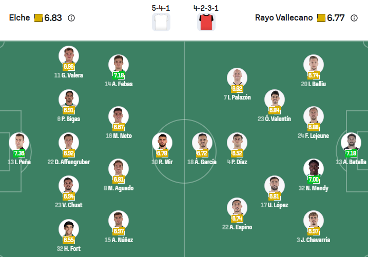 Đội hình dự kiến Elche vs Rayo Vallecano: