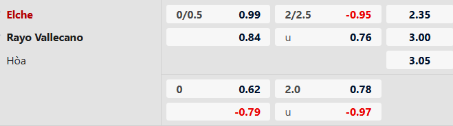 Thông tin tỷ lệ bóng đá Elche vs Rayo Vallecano: