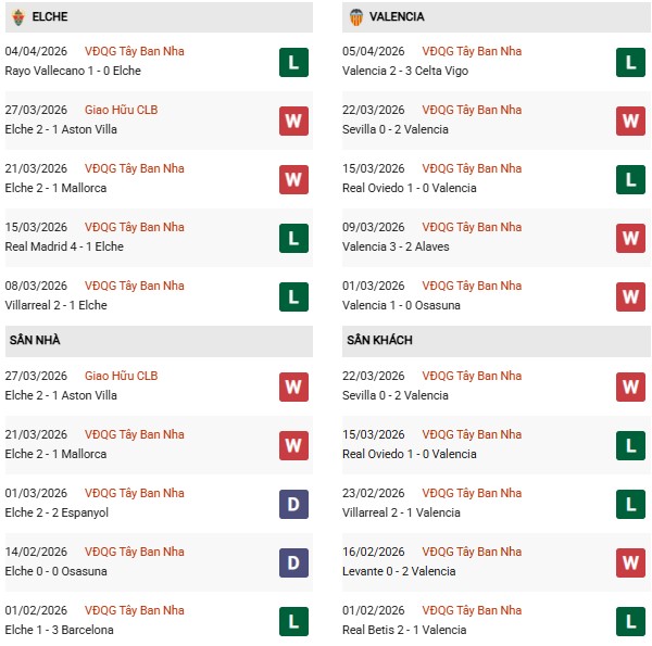 - Trên sân nhà, Elche thắng 2, thua 3 trước Valencia.