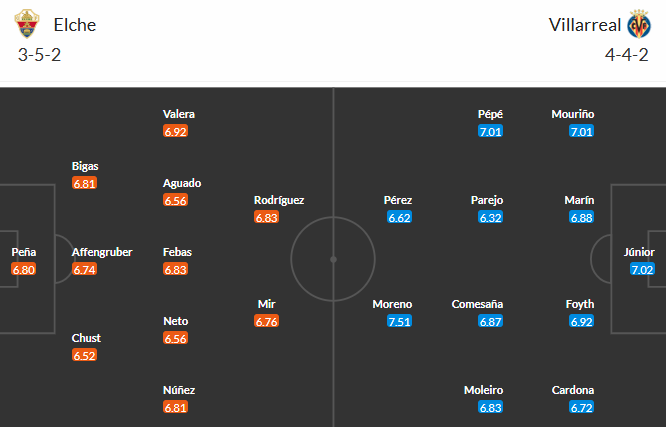 Đội hình dự kiến Elche vs Villarreal: