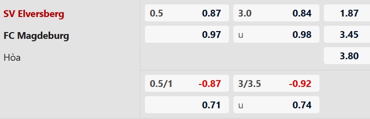 Thông tin tỷ lệ kèo Elversberg vs Magdeburg: