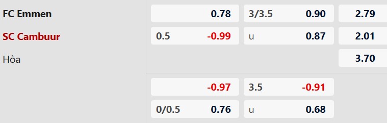 Soi kèo Emmen vs Cambuur: