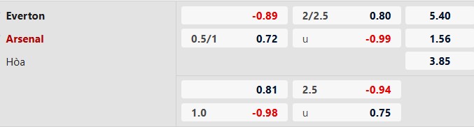 Thông tin tỷ lệ kèo bóng đá Everton vs Arsenal: