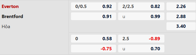 Thông tin tỷ lệ kèo Everton vs Brentford: