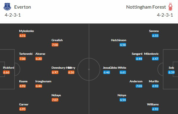 Đội hình dự kiến Everton vs Nottingham: