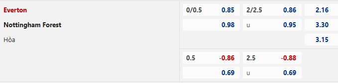 Thông tin tỷ lệ kèo Everton vs Nottingham: