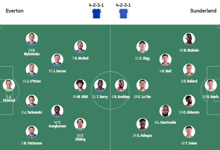 Đội hình dự kiến Everton vs Sunderland: