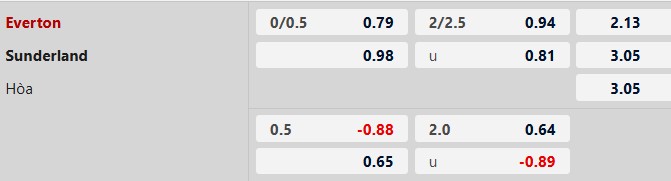 Tối đa 2 bàn: 5/6 trận gần đây của Everton chỉ có tối đa 2 bàn. 6/8 trận vừa qua của Sunderland số lần lưới rung cũng không lên được tới 3.