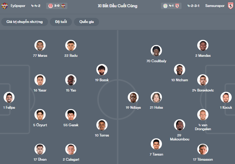 Đội hình dự kiến Eyupspor vs Samsunspor: