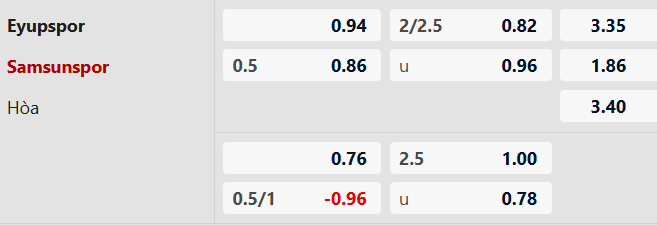Thông tin tỷ lệ cược Eyupspor vs Samsunspor: